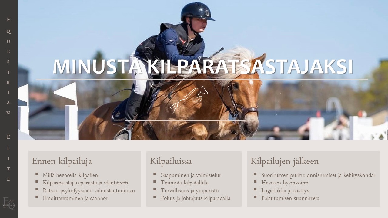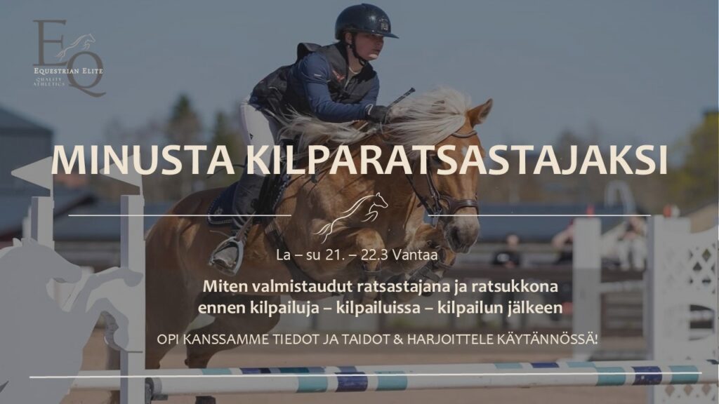 Lämpimästi tervetuloa mukaan oppimaan, oivaltamaan ja kehittämään omaa kilparatsastajan polkuasi!